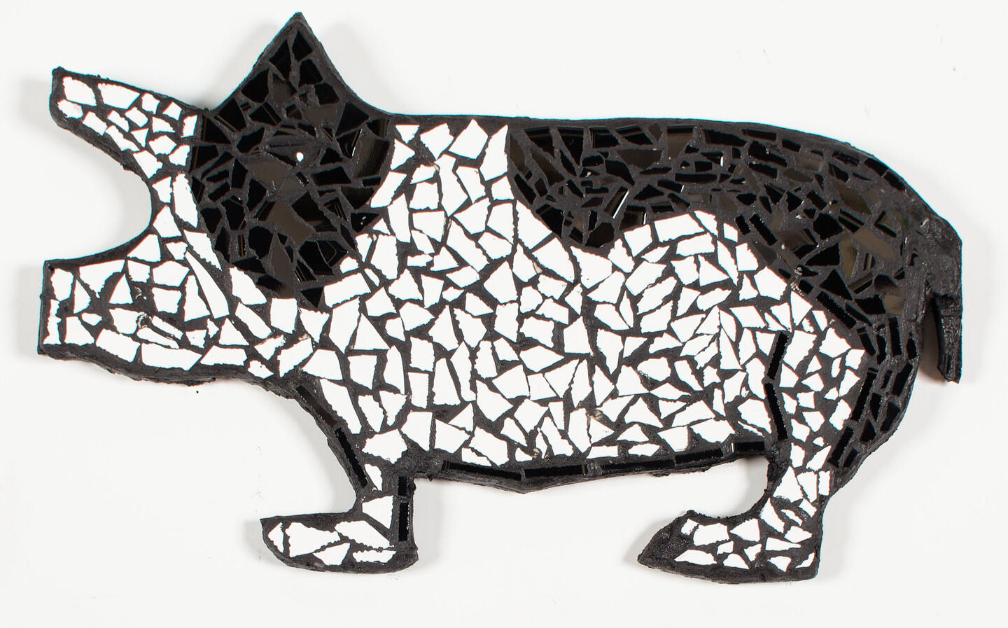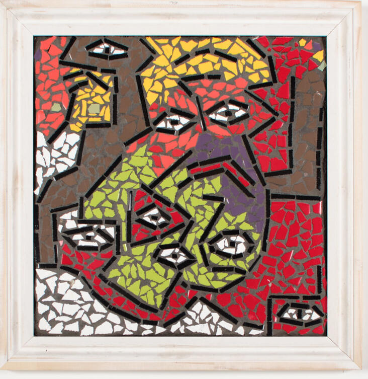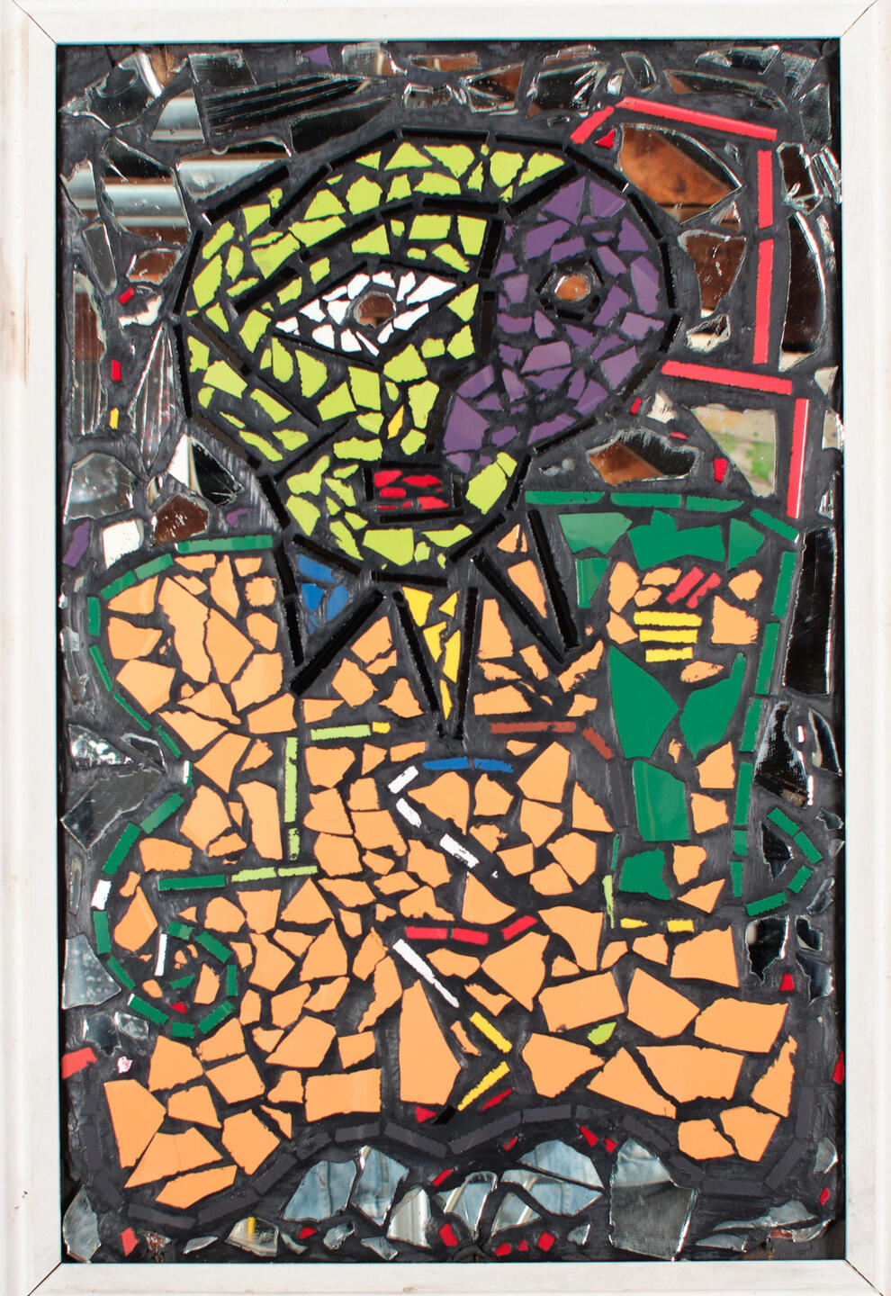 Daniel Sierra is a mosaic artist living in Catskill, NY. He was born in Brooklyn, NY in 1964 and became closely affiliated with the legendary NYC underground nightclub, the Paradise Garage in the 1980s. The Garage was known for its tight-knit community of culturally diverse musicians, artists and dancers, and it was at the Garage where Sierra met producer Michael de Benedictus, who later adopted him as his son, and Keith Haring, who took him under his wing as a mentor. His relationship with Haring sparked a lifelong influence on Sierra's work. After taking a break from New York in the early 90s, Sierra moved to Miami and began assisting and collaborating with artist Carlos Alvez. Local officials in Miami dubbed him "The Mosaic Madman" because of his unique brand of tagging public spaces, walls and street lamps with ceramic tile in an effort to beautify what was then a rundown area of South Beach.He eventually made Catskill his permanent home, where he continues to produce ceramic mosaics with never-waning passion in his shipping-container-turned-studio and works as a union painter. He has honed his craft over his 40 years of practice, producing work that blends outsider art, street art and pop art in defining a unique and eccentric style. Some of his work can be seen in various clubs, record stores or other cultural institutions where he has installed permanent pieces over the years. His most recent commission was a floor mosaic at BX Eatery, a restaurant opening soon in the Bronx.His most recent show opened at Gallery 495 in Catskill, NY in March of 2025. In "Janus: A Dual Exhibition Featuring Daniel Sierra and Mike McManus", Sierra will be debuting drawings alongside his mosaic works. With his dedication and mastery over his craft intersecting with a renewed cultural interest in raw, urban art, Sierra's work is more relevant now than ever before.